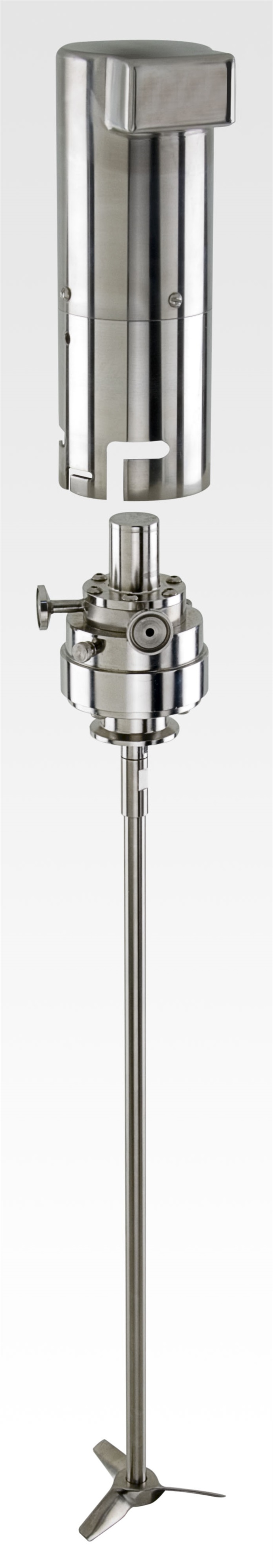 The new design will allow the user to easily remove the drive and either sterilize and/or autoclave the entire tank without removing the mixer.